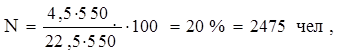 Площадь населенного пункта, попавшая в зону заражения СД и ЯВ составила 4,5 км2, общая площадь населенного пункта – 22,5 км2; плотность населения – 550 чел/км2; общее количество жителей – 22,5*550 =12 375 чел, тогда процент и количество пострадавших будет равно: