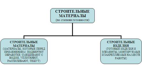 По степени готовности различают собственно строительные материалы и строительные изделия.