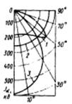Рис. 1. Кривые распределения силы света в пространстве: 1 – широкая; 2 – равномерная; 3 – глубокая