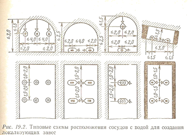 Рис. 2 Типовые схемы расположения сосудов с водой для создания локализующих завес