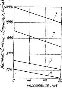 где Р, Pa — мощность лучистого потока в данной точке при наличии и отсутствии завесы, Вт/см2 , б— коэффициент ослабления средой (для воды=1,3 1/мм): /— толщина завесы, мм.