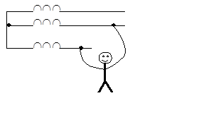 В аварийных ситуациях человек попадает под действие линейного напряжения (при неисправности фаз). К аварийным режимам относятся режимы, для которых характерно следующее: