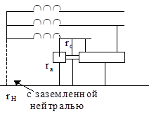 Прикосновение в сетях с заземленной нейтралью (при однофазном прикосновении).