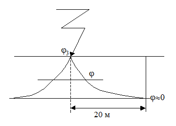 Напряжение шага зависит от потенциала замыкания свойств грунта (удельного сопротивления грунта).