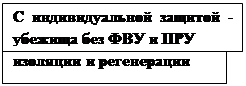 К ЗС закрытого типа с индивидуальной защитой относятся противорадиационные укрытия (ПРУ), воздух в которые подаётся не очищенным от OB (OXB) и БС, а в случае появления их в наружном воздухе люди используют для защиты средства индивидуальной защиты.