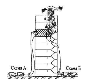 Рис. 3 Схемы подачи огнетушащих средств в верхней этажи зданий повышенной этажности.