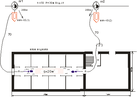 Водоснабжение. На расстоянии 200м от здания с северной стороны на тупиковой водопроводной сети диаметром 150мм расположены два пожарных гидранта.