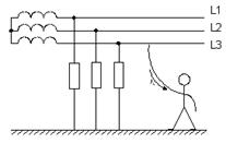 | Однофазное прикосновение к токоведущим частям трансформатора в нормальном режиме работы сети напряжением 10 кВ |