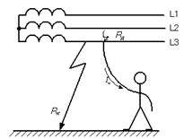 | Однофазное прикосновение к токоведущим частям трансформатора в аварийном режиме работы сети напряжением 10 кВ |