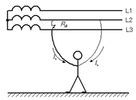 | Двухфазное прикосновение к токоведущим частям трансформатора в нормальном режиме к сети 10 кВ |