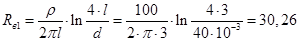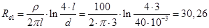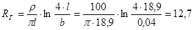 Определим сопротивление току растекание с одного вертикального заземлителя: