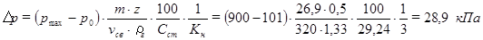 Таблица 6. Результаты расчета концентрации газовоздушной смеси