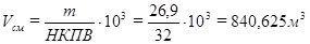 где VCM − объем взрывоопасной концентрации сероводорода в помещении, м3, VC6 − свободный объем помещения, м3.