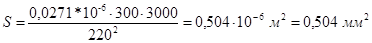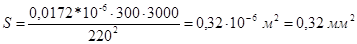 Теперь можно площадь сечения проводника, необходимого для зануления (U=220 B) и оно равно: