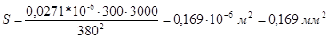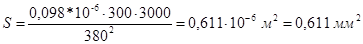 Отсюда можно найти площадь сечения проводника, и она равна: