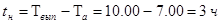 tн = Твып - Та = 10.00 - 7.00 = 3ч,