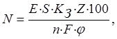 Принимая коэффициент отражения от стен и потолка равными 70% и 50% соответственно и с учетом полученного индекса помещения и типа светильника, величина использования светового потока составляет h=55%. При норме освещенности 200 лк, площади помещения S=230 м2 , коэффициент неравномерности освещения Z=1,2, коэффициент запаса К3 =1,5, световом потоке одной лампы 4070 лм. Из этого следует, что величина коэффициента использования зависит от типа светильника, коэффициента отражения потолка, стен и индекса помещения i.