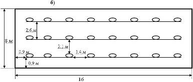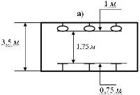 Рис. 1. – Схемы размещения светильников: а – в разрезе; б – в плане