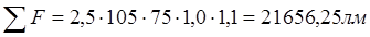 1. Определяем общий световой поток (F , лм ), необходимый для освещения территории, по формуле: