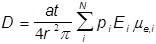 Предположим, что источник обладает энергетическим спектром с N линиями, энергия i-ой линии Еi, выход g-квантов на распад в i-ой линии спектра Рi , массовый коэффициент истинного поглощения g-излучения i-ой линии спектра mei , тогда в системе СИ получим значение дозы в Зв (зиверт)из следующего выражения [6]: