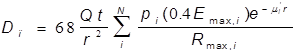 Предположим, что имеется источник b- излучения с известными для него Еmax,i и Rmax,i тогда можно рассчитать дозу, создаваемую источником, используя следующее выражение [6]: