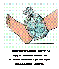Уменьшению боли при небольших ушибах мягких тканей способствует местное применение холода: на поврежденное место направляют струю холодной воды, прикладывают к нему пузырь или грелку со льдом или делают холодные примочки. Рекомендуется сразу после травмы наложить давящую повязку на место ушиба и создать покой, например при ушибе руки ее покой можно обеспечить с помощью косыночной повязки. При ушибах ноги ей придают возвышенное положение, в течение нескольких дней соблюдают щадящий режим нагрузки, а затем, по мере уменьшения боли и отека, постепенно его расширяют.