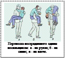 При отсутствии какого-либо транспорта следует осуществить переноску пострадавшего в лечебное учреждение на носилках, в т. ч. импровизированны. Первую помощь приходится оказывать и в таких условиях, когда нет никаких подручных средств или нет времени для