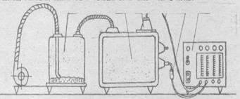 І - аспіратор; 2 - алонж; 3 - з'єднувальні гумові шланги; 4 – патрон-фільтротримач; 5 - пилова камера; 6 - змішувач