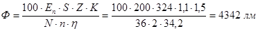 Задачей расчета является определение потребной мощности электрической осветительной установки для создания в производственном помещении заданной освещенности. Для расчета общего равномерного освещения применим метод светового потока (коэффициента использования).