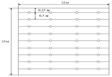 Т.к. ширина помещения равна 18 метрам, то выберем 3 схему размещения светильников: