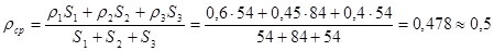 Определим средневзвешенный коэффициент отражения потолка, стен и пола: