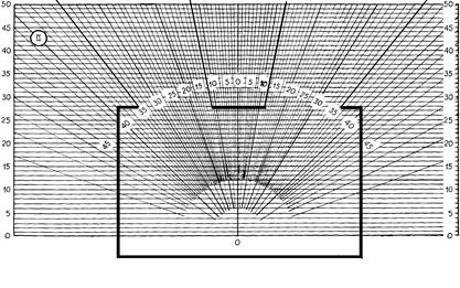 — между линией рабочей поверхности и линией, соединяющей расчетную точку с оптическим центром светопроема;