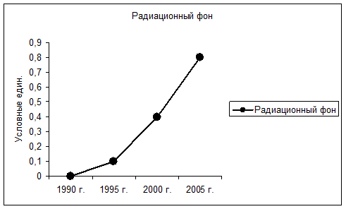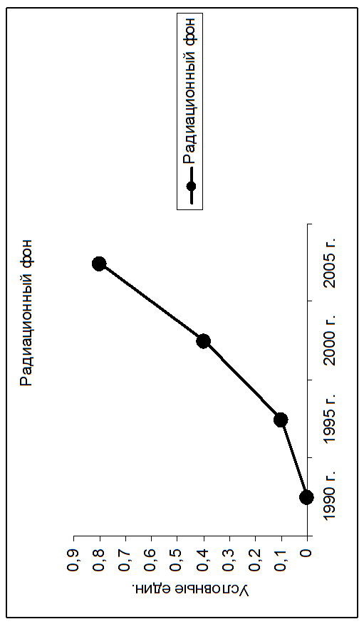 Как ни печально, но из рисунка 4 мы видим, что за последние пятнадцать лет радиационный фон увеличился в восемь раз. Хотя показатели реального радиационного фона пока далеки от опасного для человека уровня, его прогрессивный рост заставляет задуматься.