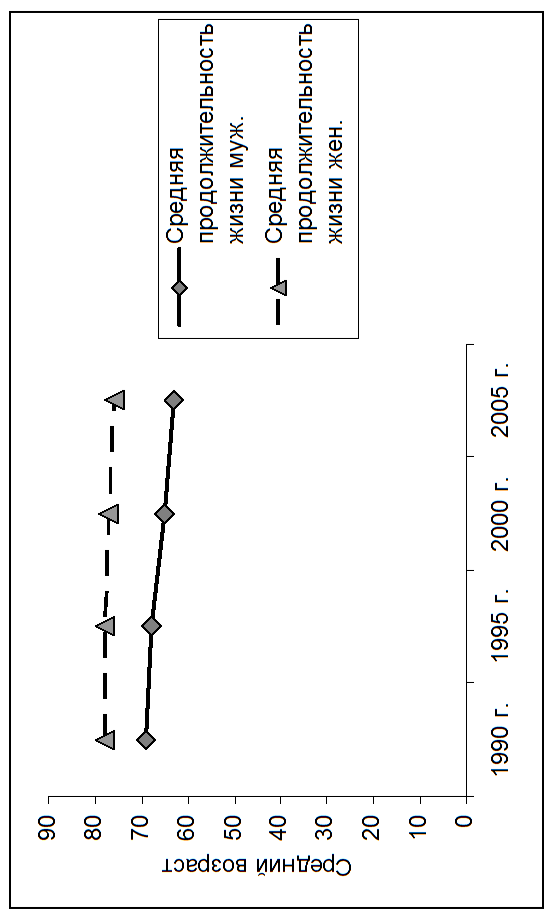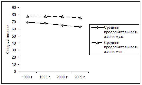 Однако динамика снижения средней продолжительности жизни женского населения несколько меньше, чем мужского. Причем рассмотрение показателей по социальным и профессиональным признакам показывает, что люди, работающие на производствах, связанных с тяжелым, физическим трудом, умирают раньше, нежели служащие и работники сферы услуг.