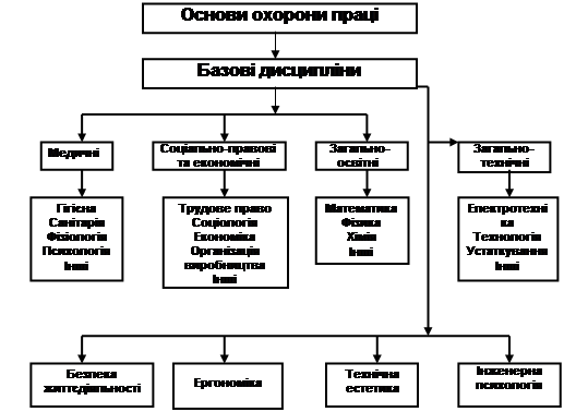 Рис. 1.1 – Структурна схема зв’язку дисципліни «Основи охорони праці» з іншими дисциплінами