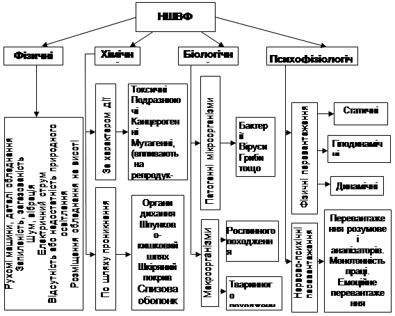 Рис. 1.2 – Класифікація небезпечних і шкідливих виробничих факторів