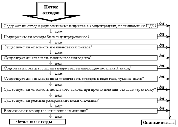 В мировой практике существует несколько методов оценки опасности промышленных отходов. Одним из наиболее удобных является метод, разработанный Environmental Protection Agency (EPA)[1] , идеология которого представлена в виде блок-схемы на рис.3.2.