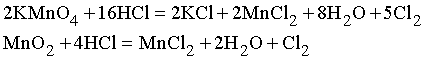 Использование хлора в промышленности. Под давлением хлор превращается в жидкость, которую широко используют как отбеливатель, в частности в текстильной и бумажной промышленности, начиная с 1795. Хлор – слишком сильный окислитель для отбеливания шелка и шерсти, но эффективен для отбеливания хлопка, льна и древесной массы. Другое важное применение жидкого хлора – для очистки воды – впервые предпринято в 1895 для целей городского водоснабжения Нью-Йорка. Соединения хлора находят разнообразное применение. Хлороформ CHCl3 и хлорэтил C2 H5 Cl являются анестетиками, трихлорэтаналь (или хлораль) CCl3 CHO применяют в медицине как наркотик, тетрахлорид углерода CCl4 используется для тушения огня, для сухой чистки, как и трихлорэтилен С2 HCl3 . Три хлорпроизводных – фосген COCl2 (удушающий газ), иприт (C2 H4 Cl)2 S – кожнонарывная жидкость, хлорпикрин CCl3 NO2 (слезоточивый газ) – являются боевыми отравляющими веществами. Фреон CF2 Cl2 используется как хладагент в холодильной технике. Хлор применяют в производстве красок, резин, синтетического каучука, углеводородов, взрывчатых веществ и в химических синтезах. Хлор используют также для отбеливания губок и соломы. Хранят и перевозят хлор в стальных баллонах и железнодорожных цистернах под давлением. При выходе в атмосферу он дымит, заражает водоемы. Лабораторный метод получения хлора заключается в медленном прикапывании концентрированной соляной кислоты HCl через капельную воронку к KMnO4 или MnO2 :