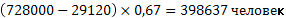 К – численность зараженного и контактировавшего населения, чел.;
