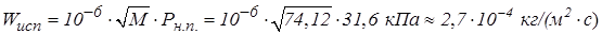 Расчёт массы жидкости, испарившейся с поверхности разлива
