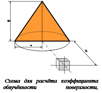 8. Факел пламени при диффузионном горении разлива горючей жидкости имеет форму правильного конуса, площадь основания конуса факела пламени равна площади разлива жидкости;