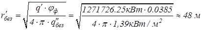 Расстояние, в пределах которого возможно образование ожогов III-й степени открытых участков кожи (по формуле 3.10):