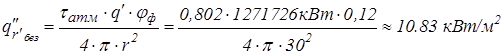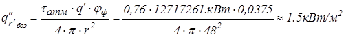 Расчёт плотности теплового потока на различных расстояниях от эпицентра горения