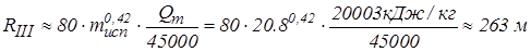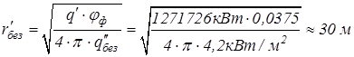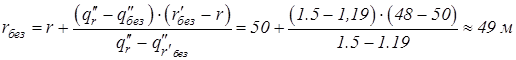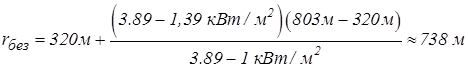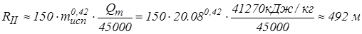 Расстояние, в пределах которого возможно образование ожогов II-й степени открытых участков кожи (по формуле 3.11):