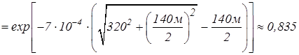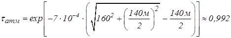 Коэффициент пропускания атмосферы для расстояния 160м;