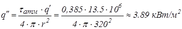 Согласно справочным данным, для автомашин критическая плотность теплового потока