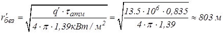 , то приблизительное минимальное безопасное расстояние можно рассчитать, используя коэффициент пропускания атмосферы