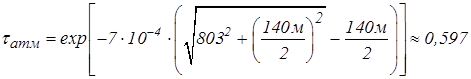 Коэффициент пропускания атмосферы для расстояния 803 м: