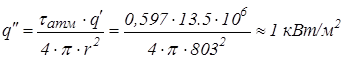 Реальная плотность теплового потока на расстоянии 803м: