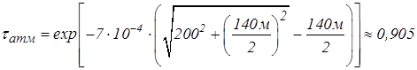 Коэффициент пропускания атмосферы для расстояния 200м;